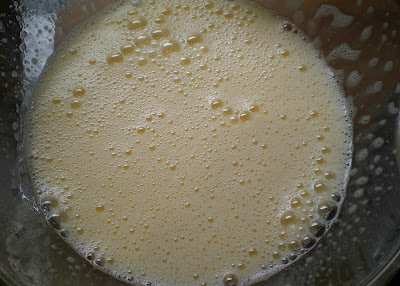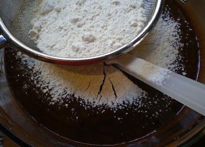 A la mezcla resultante le añadimos la harina tamizada por un colador para que no salgan grumos.