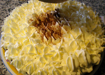 Y sobre la crema, con una manga pastelera, floreamos toda la tarta.