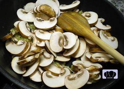 A la cebolla le añadiremos los champiñones. Es temporada de setas, aprovecha la más fresca del mercado, que seguramente sea la más barata –no más que un champiñón cultivado, claro-. El como cortar los champis va al gusto, pero a nosotros, para ensalada incluso los llegamos a poner crudos. Ahora bien, templados o salteados, nuestra recomendación es que los pongas lo más grueso que te permita tu paladar.