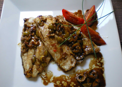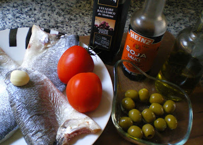 ¡Con aceituna! que requetebueno, mi próximo pescadito al horno irá con su soja, su tomate, sus olivitas rellenas, vamos que será una copia de este ;)