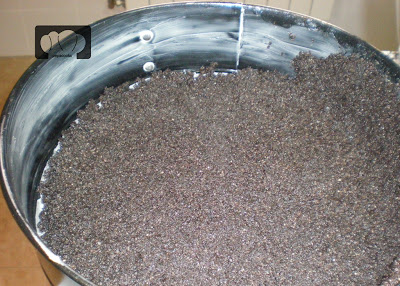 Lo vertemos sobre la tarta ya fría, que habremos puesto sobre una rejilla para que pierda el calor.