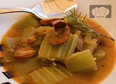 Pepa, sabes que nunca había oído hablar del cardo, de hecho cuando ví la entrada pensé que te habías equivocado y en vez de cardo era caldo..je. Cosas que una aprende, me pareció que es como el apio?, tiene aspecto fibroso, seguramente muy rico, al menos eso dicen las fotos.