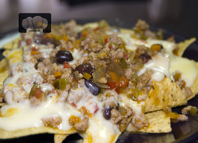 Nosotros tambien lo hemos preparado cubriendo una cama de nachos e intercalando capas de chili y crema de queso, que hacemos con un poco de leche y mucho queso cheddar rallado muy fino -I love microplane-. Momento remember.