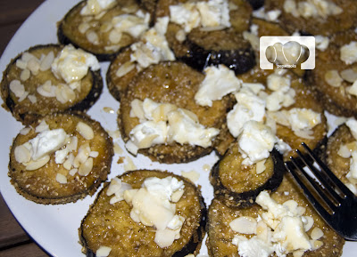Berenjenas rebozadas con queso de cabra, almendras y miel: