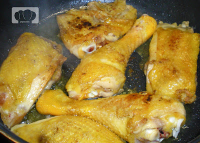 Cortamos el pollo en trozos y una vez salpimentado lo espolvoreamos un poquito con harina. Doramos y reservamos.