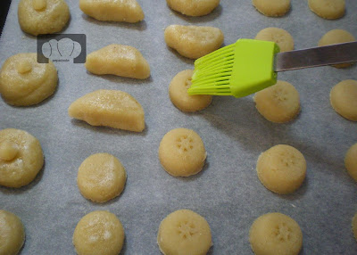 Cuando esté bien caliente, pintaremos las figuras con agua y azúcar y las pondremos en la parte superior del horno durante uno o dos minutos, con mucho cuidado de que no se nos queme.