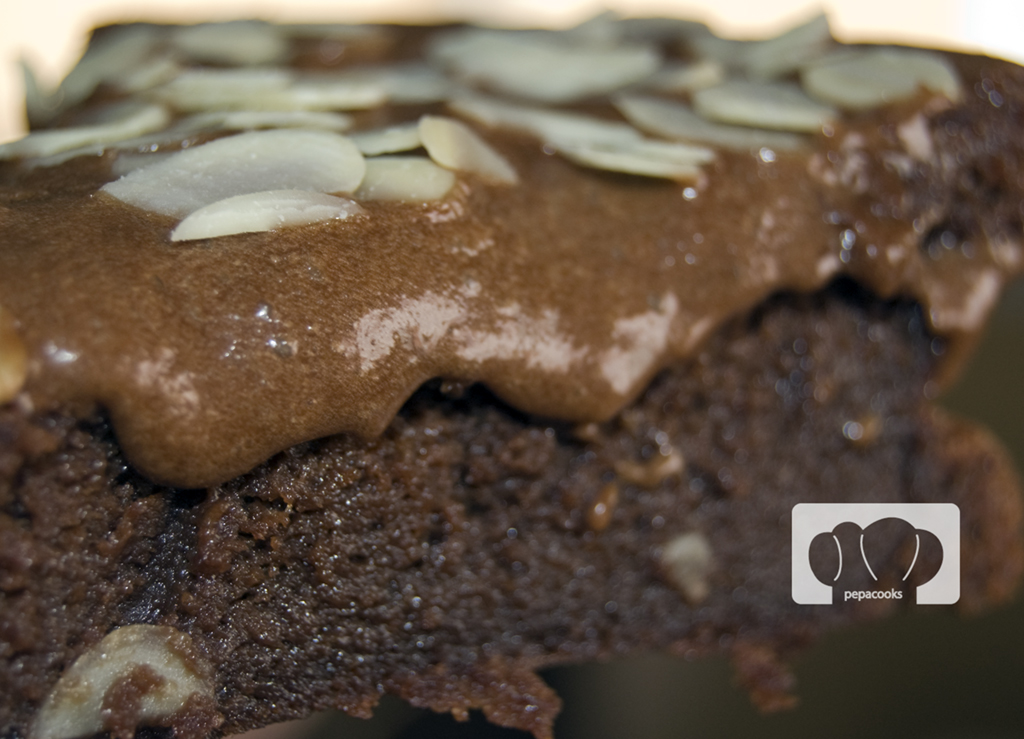 Hoy traemos un pastel que es una fiesta en si mismo. Textura suave del bizcocho, que sin levadura parece un brownie cubierto de una crema que hace que se disparen las endorfinas sin ayuda.