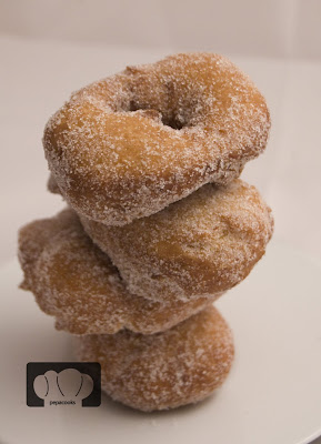 Al sacarlas las escurrimos en papel de cocina y las pasamos por azúcar al momento.