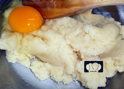 Apartamos del fuego y cuando esté templada vamos añadiendo los huevos de uno en uno. Dejamos reposar media hora.