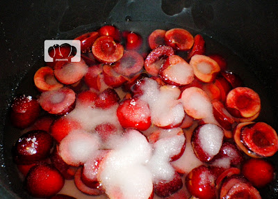 A las cerezas sin hueso las cubrimos de agua y les ponemos el azúcar. Cocemos 20 minutos y trituramos y colamos.